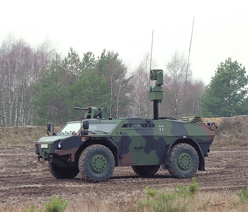 Fennek armored reconnaissance vehicle with 40mm grenade launcher